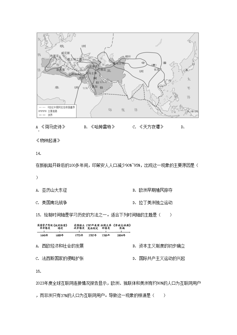 【文檔名稱】 2025年湖南中考歷史試題及答案(Word版).doc