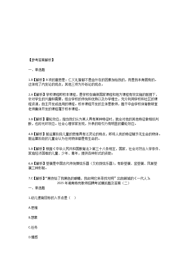 【文檔預(yù)覽】 無憂考網(wǎng)整理發(fā)布2025年湖南特崗教師招聘考試模擬題及答案(Word版),前五頁(yè)預(yù)覽如下:
