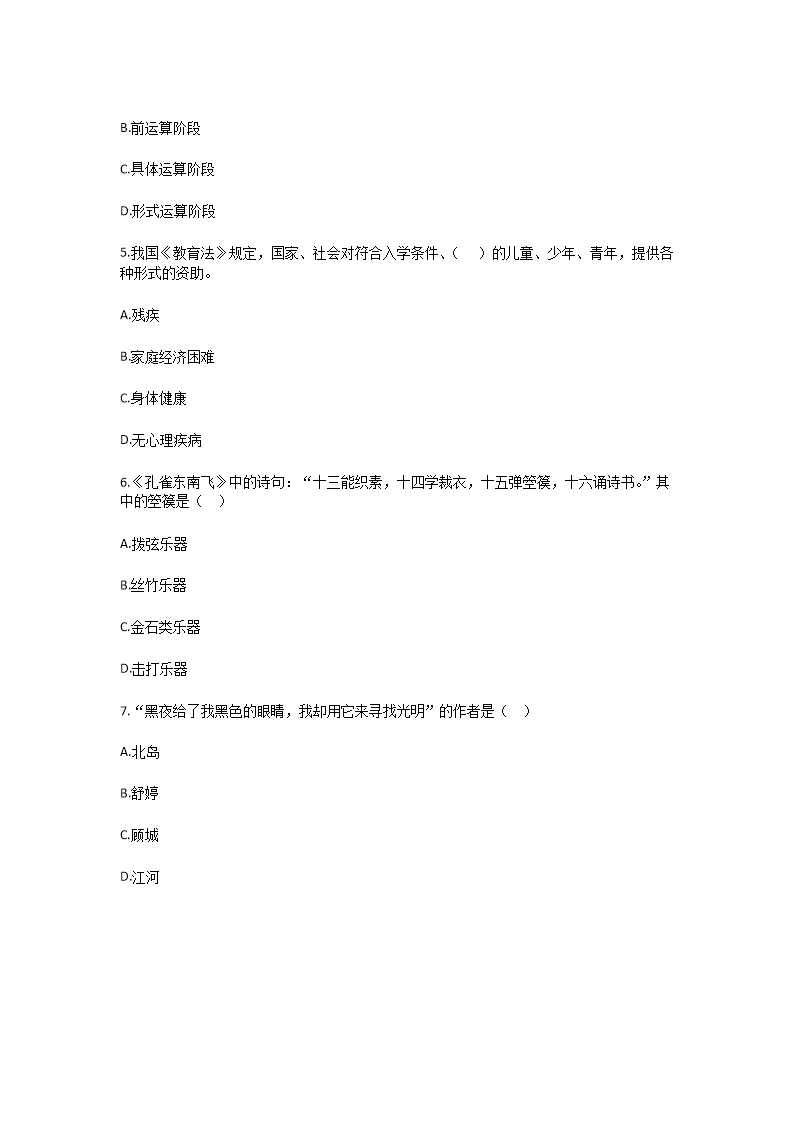 - 2020年湖南株洲天元區(qū)教師招聘考試真題及答案
