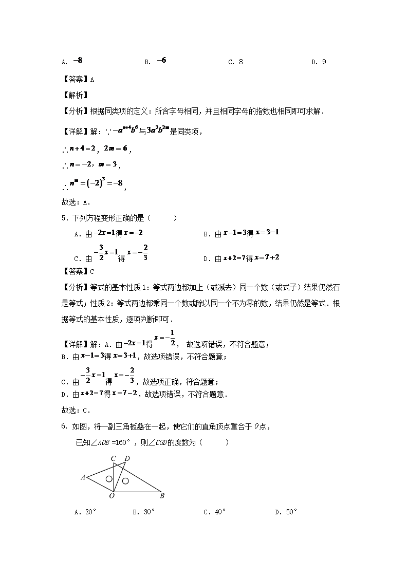 - 2020-2021學(xué)年廣東廣州南沙區(qū)七年級(jí)上冊(cè)數(shù)學(xué)期末試卷及答案