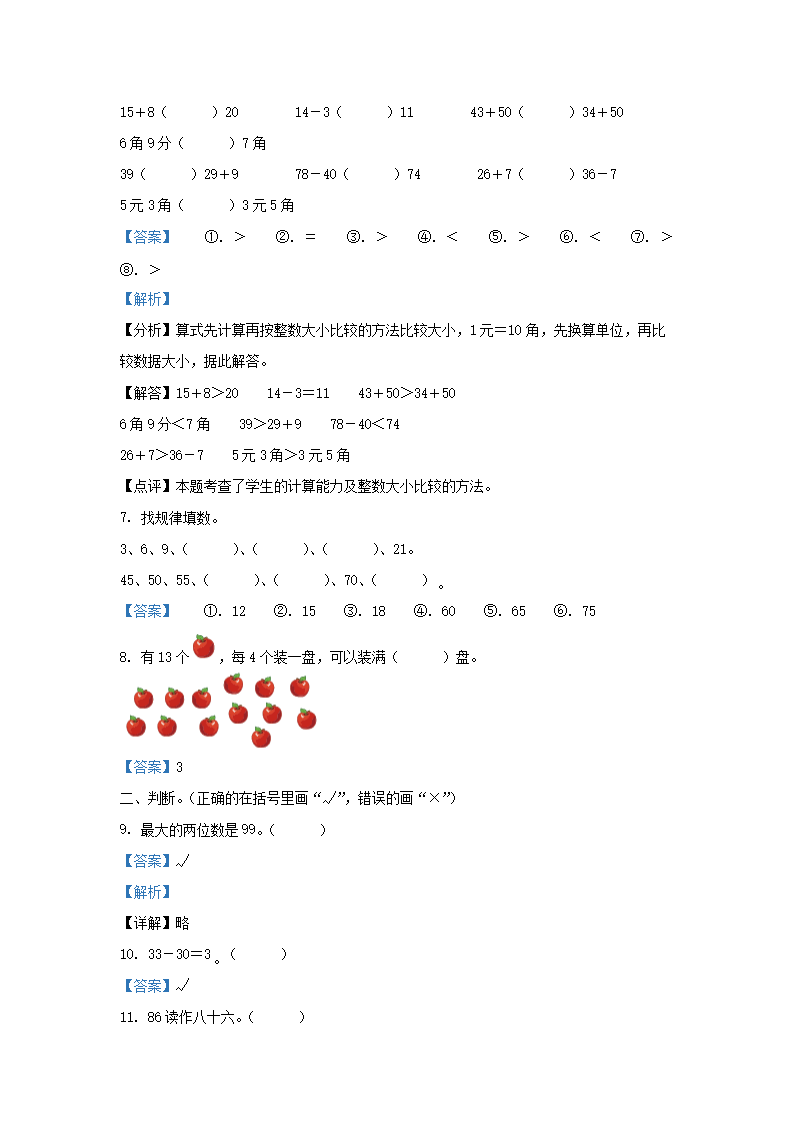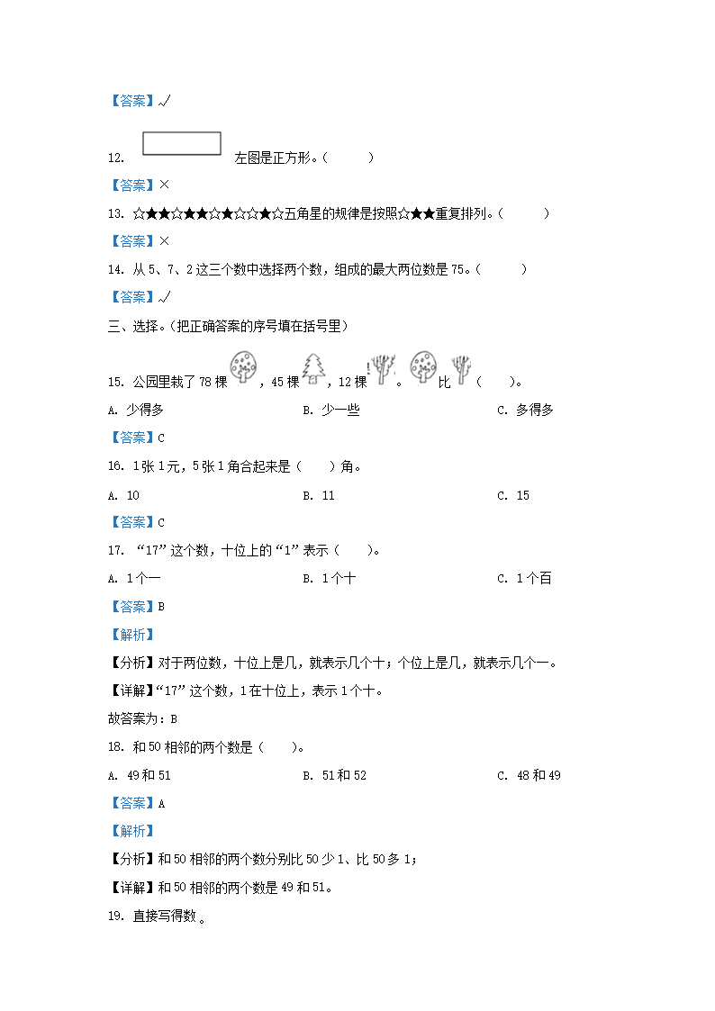 時間:2025-06-26 09:12:00 來源:無憂考網(wǎng) [字體:小 中 大]【文檔名稱】 2019-2020學(xué)年天津市寶坻區(qū)小學(xué)一年級下冊數(shù)學(xué)期末試題及答案(Word版).doc
