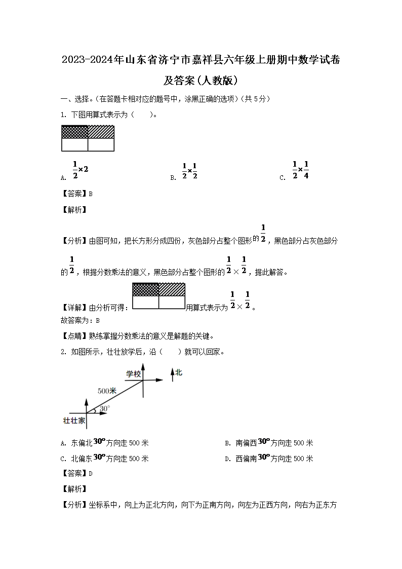 【文檔名稱】 2023-2024年山東省濟寧市嘉祥縣六年級上冊期中數(shù)學試卷及答案(人教版)(Word版).doc
