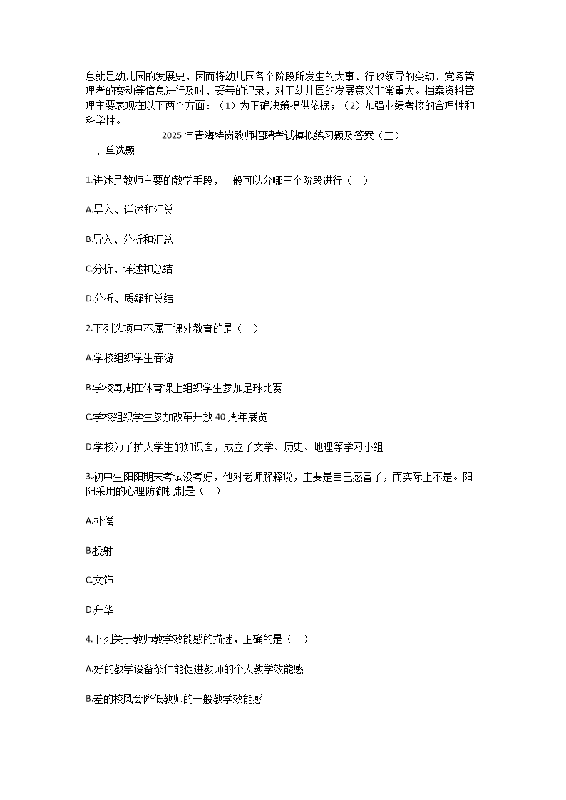 【文檔名稱】 2025年青海特崗教師招聘考試模擬練習(xí)題及答案(Word版).doc