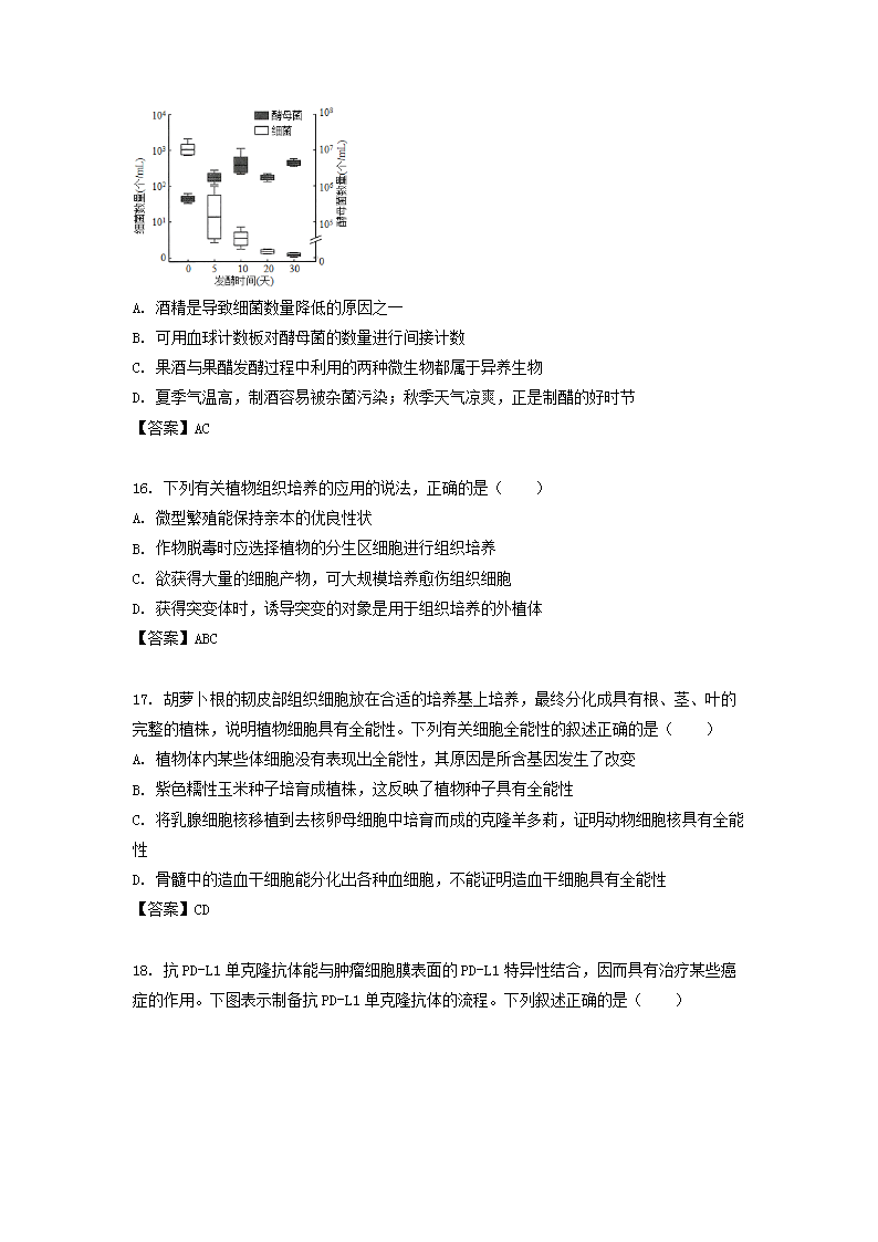 - 2021-2022學(xué)年江蘇省南通高二下學(xué)期生物期中考試題及答案