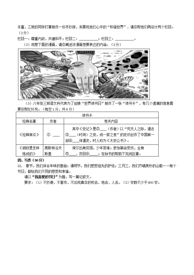 - 2023-2024學(xué)年江西省景德鎮(zhèn)市浮梁縣八年級下學(xué)期期末語文試題及答案