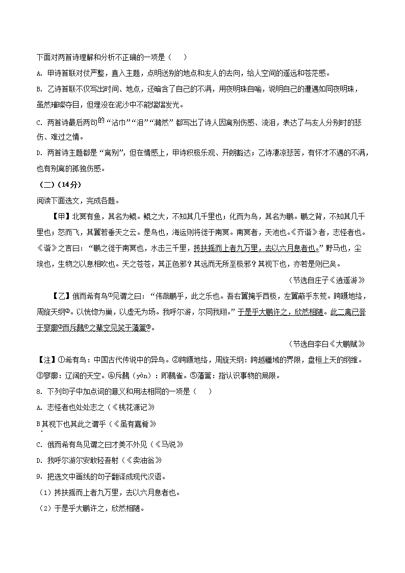 - 2023-2024學(xué)年江蘇省揚州市寶應(yīng)縣八年級下學(xué)期期末語文試題及答案