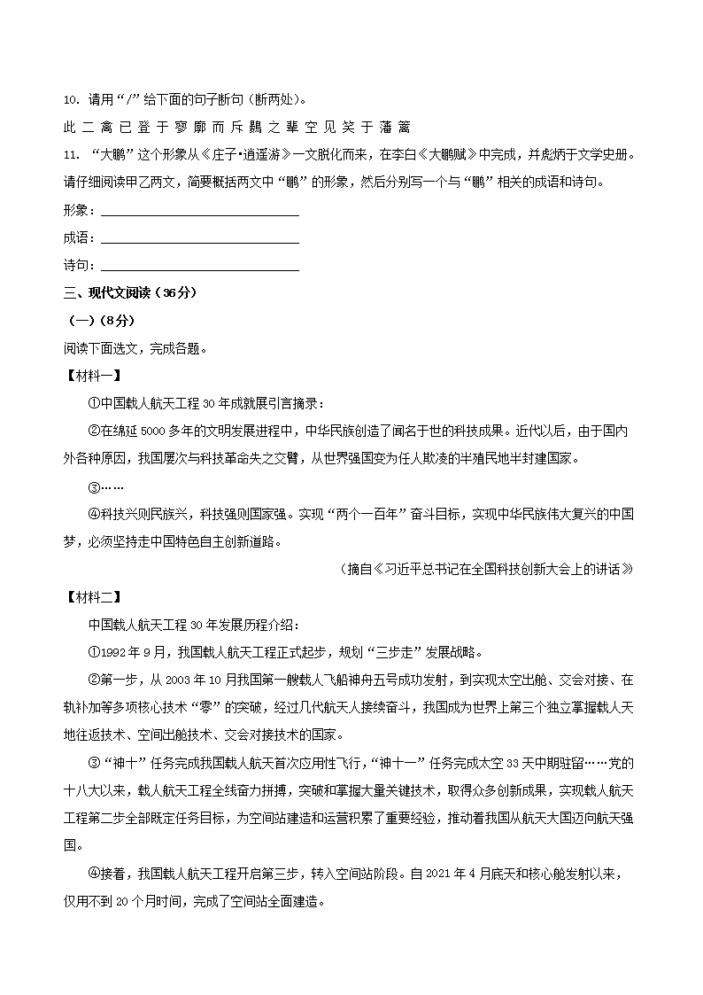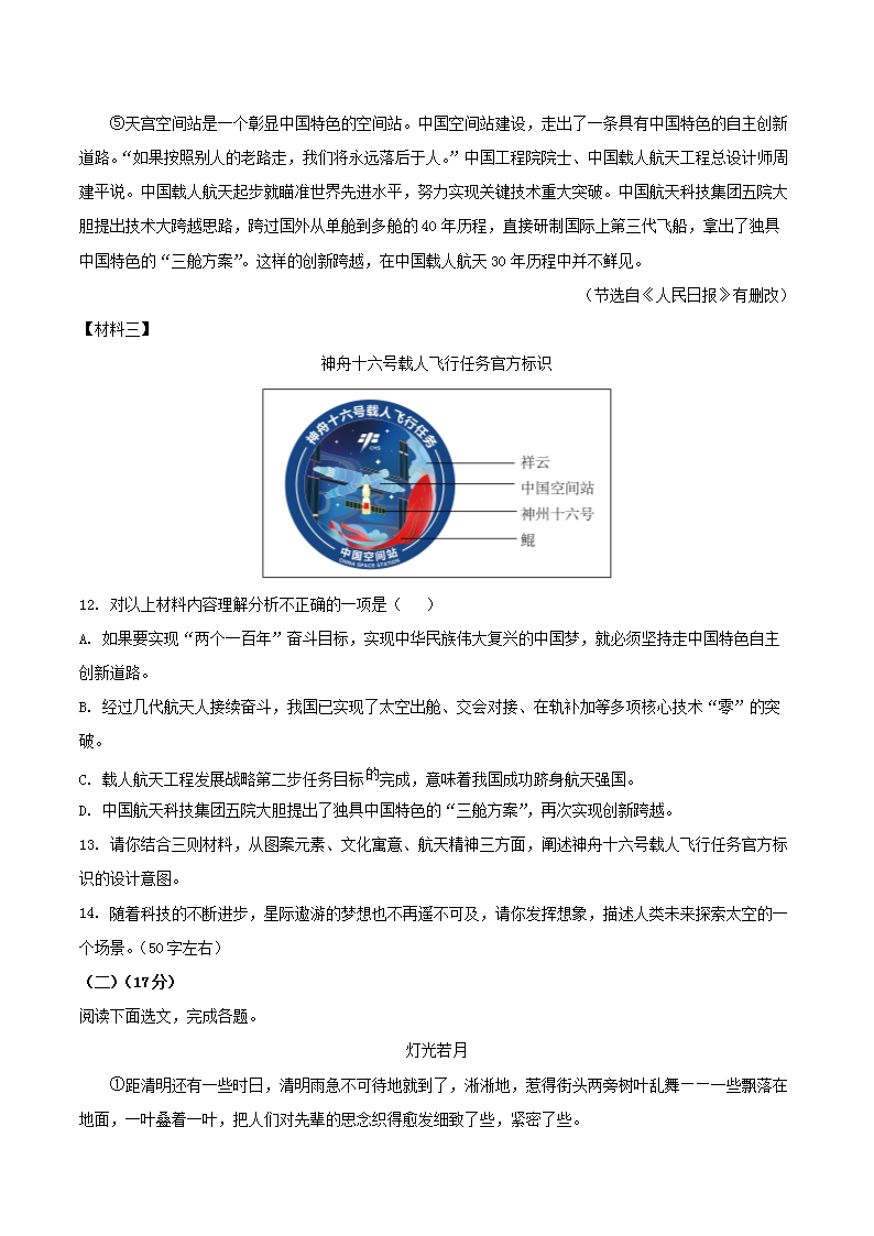 時間:2025-06-30 13:40:00 來源:無憂考網(wǎng) [字體:小 中 大]【文檔名稱】 2023-2024學(xué)年遼寧省丹東市鳳城市八年級下學(xué)期期末語文試題及答案(Word版).doc