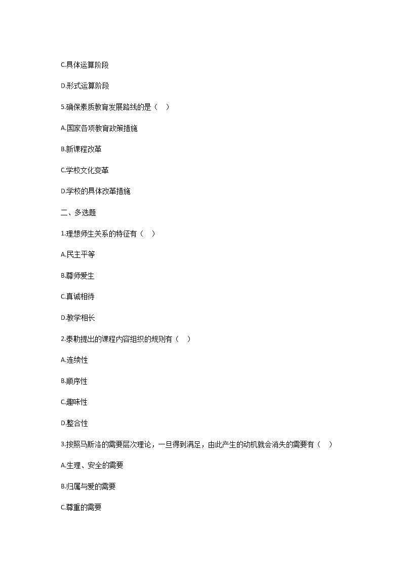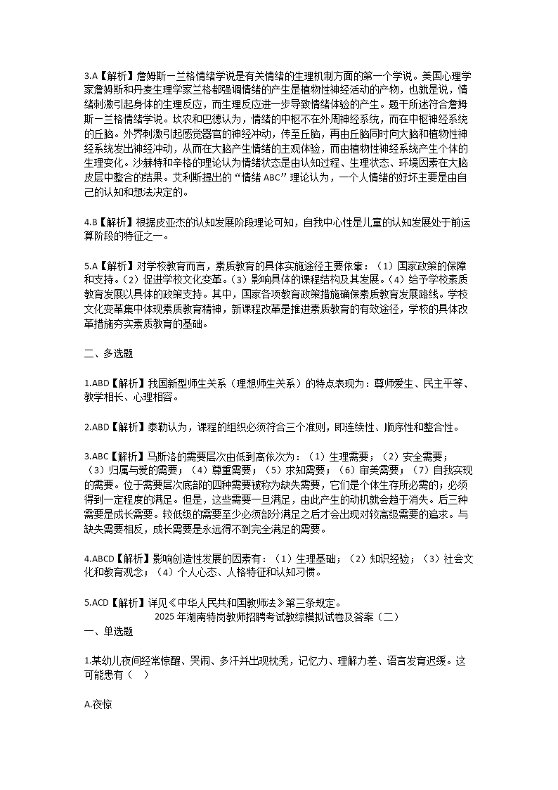 【文檔名稱】 2025年湖南特崗教師招聘考試教綜模擬試卷及答案(Word版).doc