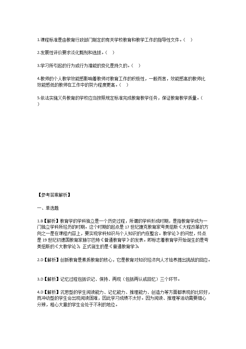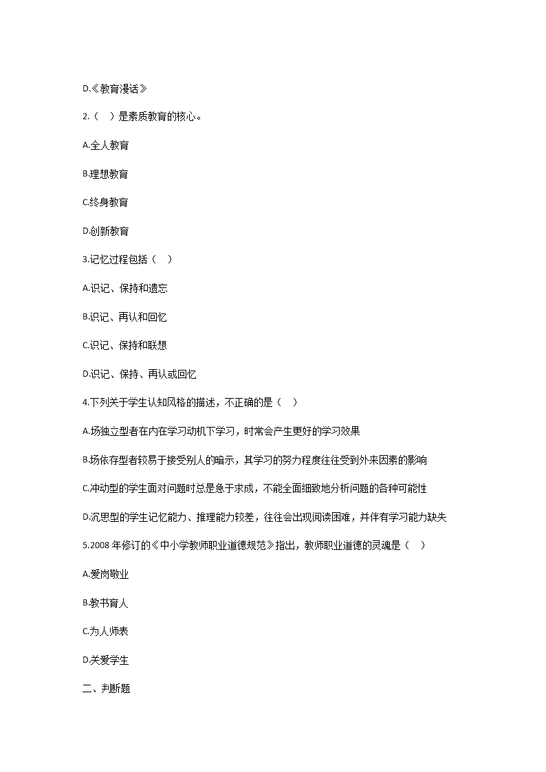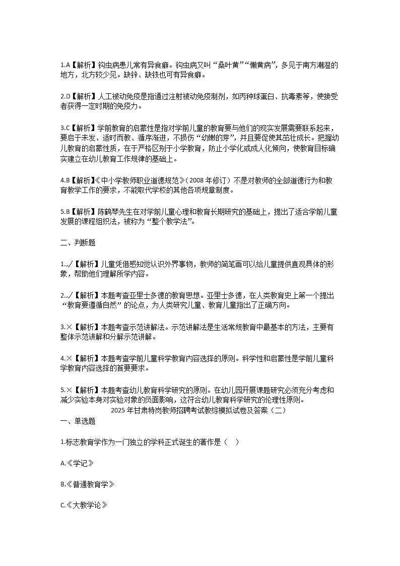 【文檔名稱】 2025年甘肅特崗教師招聘考試教綜模擬試卷及答案(Word版).doc