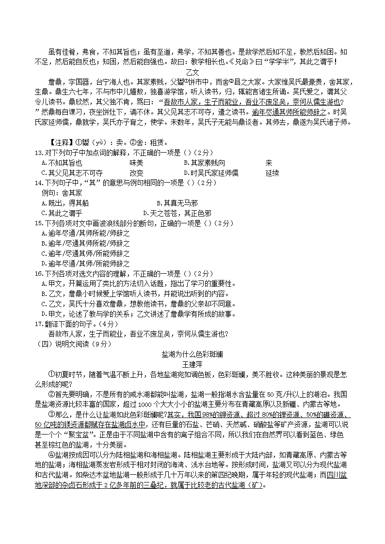 - 2023-2024學(xué)年江西省景德鎮(zhèn)市浮梁縣八年級(jí)下學(xué)期期末語文試題及答案