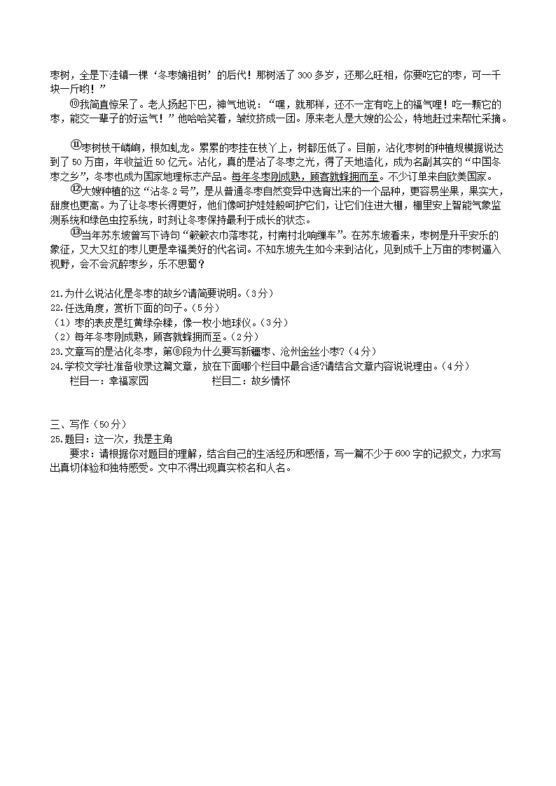 - 2023-2024學(xué)年山東省菏澤市魯西新區(qū)八年級(jí)下學(xué)期期末語文試題及答案