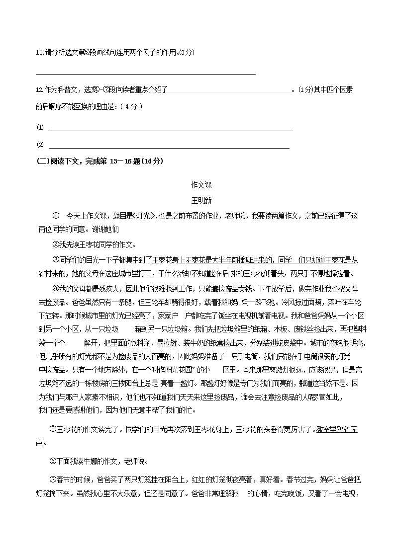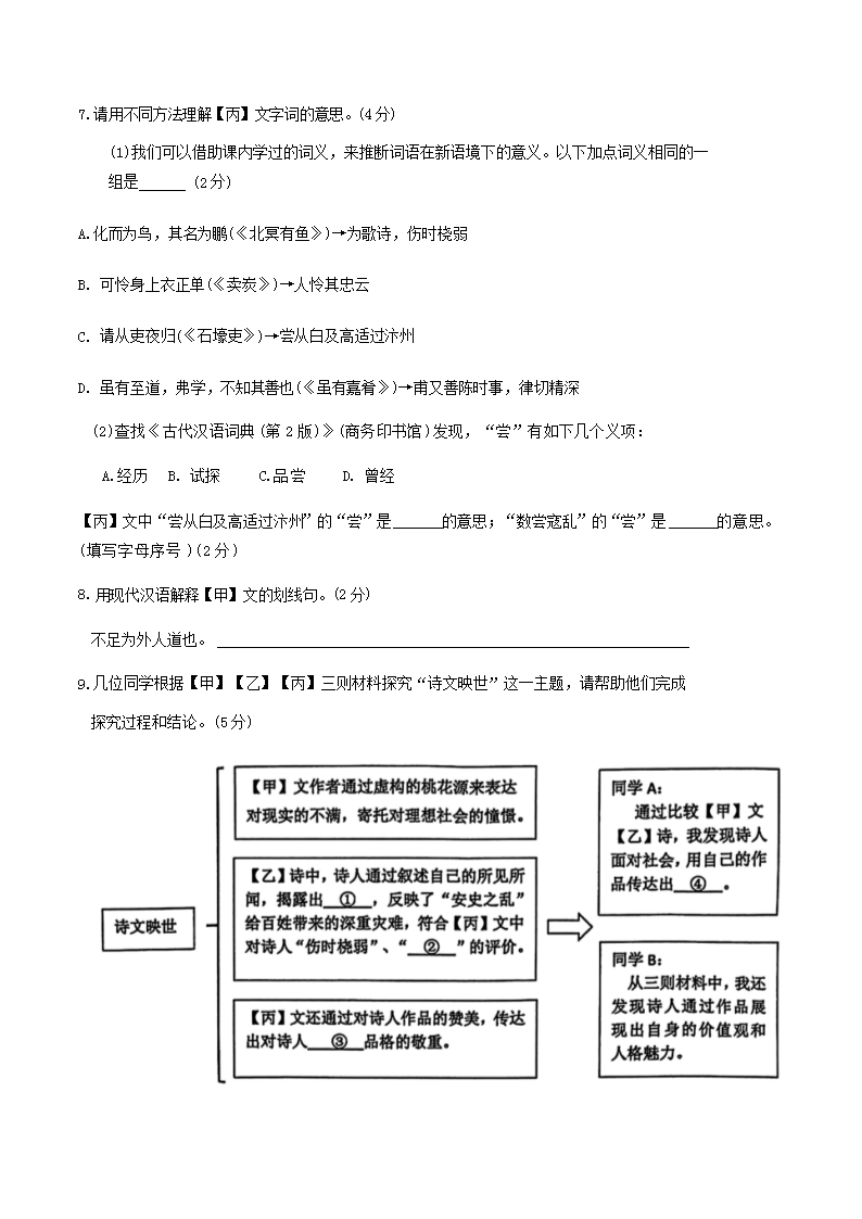 2023-2024學(xué)年上海市虹口區(qū)八年級下學(xué)期期末語文試題及答案(Word版)