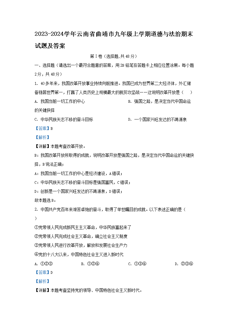 時間:2025-07-02 09:09:00 來源:無憂考網(wǎng) [字體:小 中 大]【文檔名稱】 2023-2024學(xué)年云南省曲靖市九年級上學(xué)期道德與法治期末試題及答案(Word版).doc