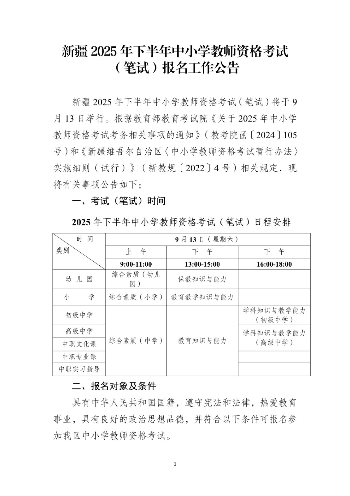 2025年下半年新疆中小學(xué)教師資格考試筆試報名工作公告(7月4日起報名)