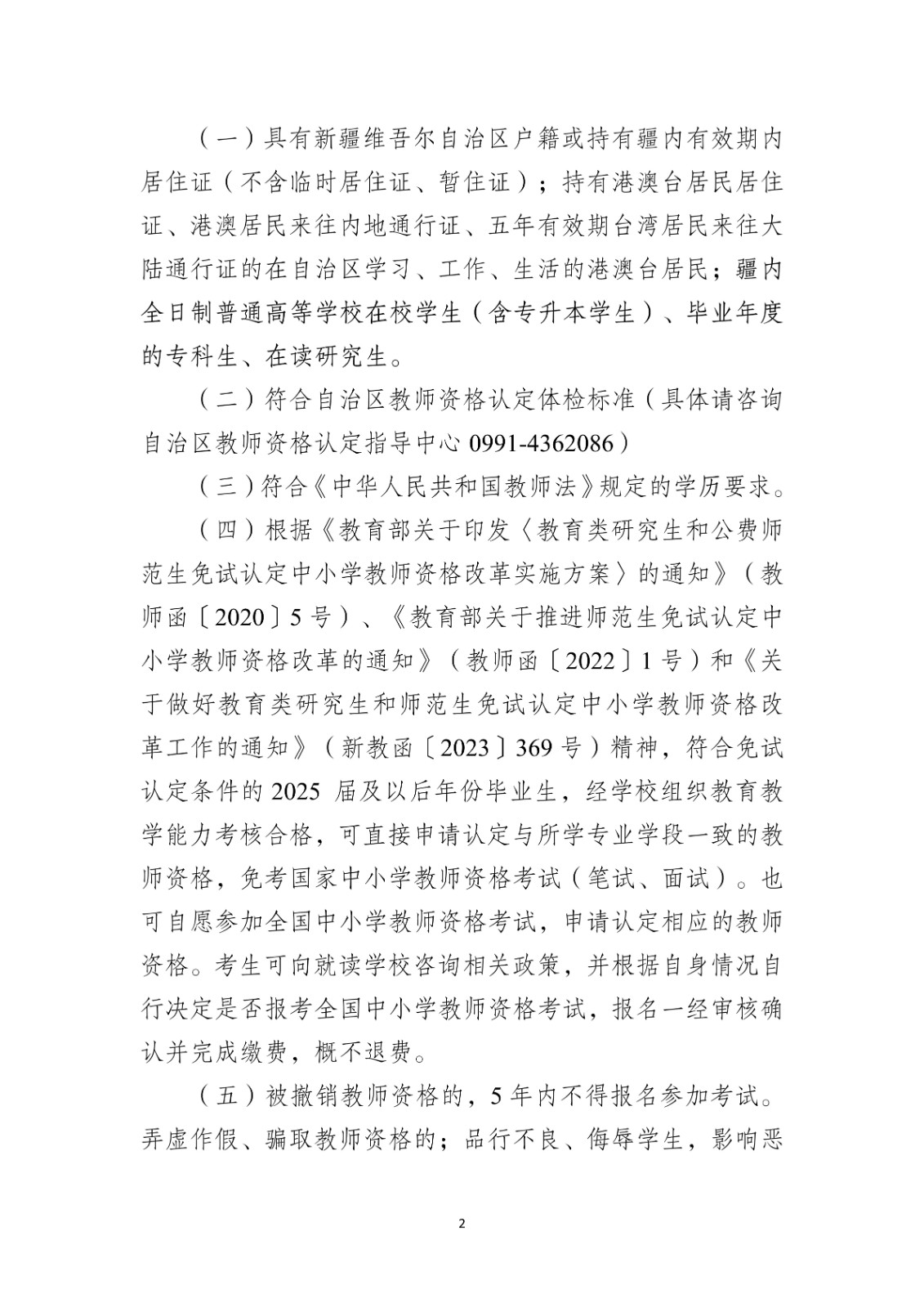 2024下半年新疆中小學(xué)和幼兒園教師資格認(rèn)定公告