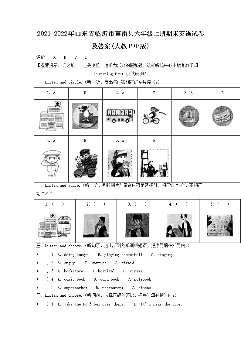時(shí)間:2025-07-02 16:40:00 來(lái)源:無(wú)憂考網(wǎng) [字體:小 中 大]【文檔名稱】 2021-2022年山東省臨沂市莒南縣六年級(jí)上冊(cè)期末英語(yǔ)試卷及答案(人教PEP版)(Word版).doc