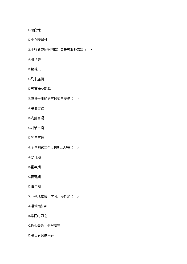 - 2019年5月18日重慶武隆縣教師招聘考試教育綜合基礎(chǔ)知識(shí)真題及答案