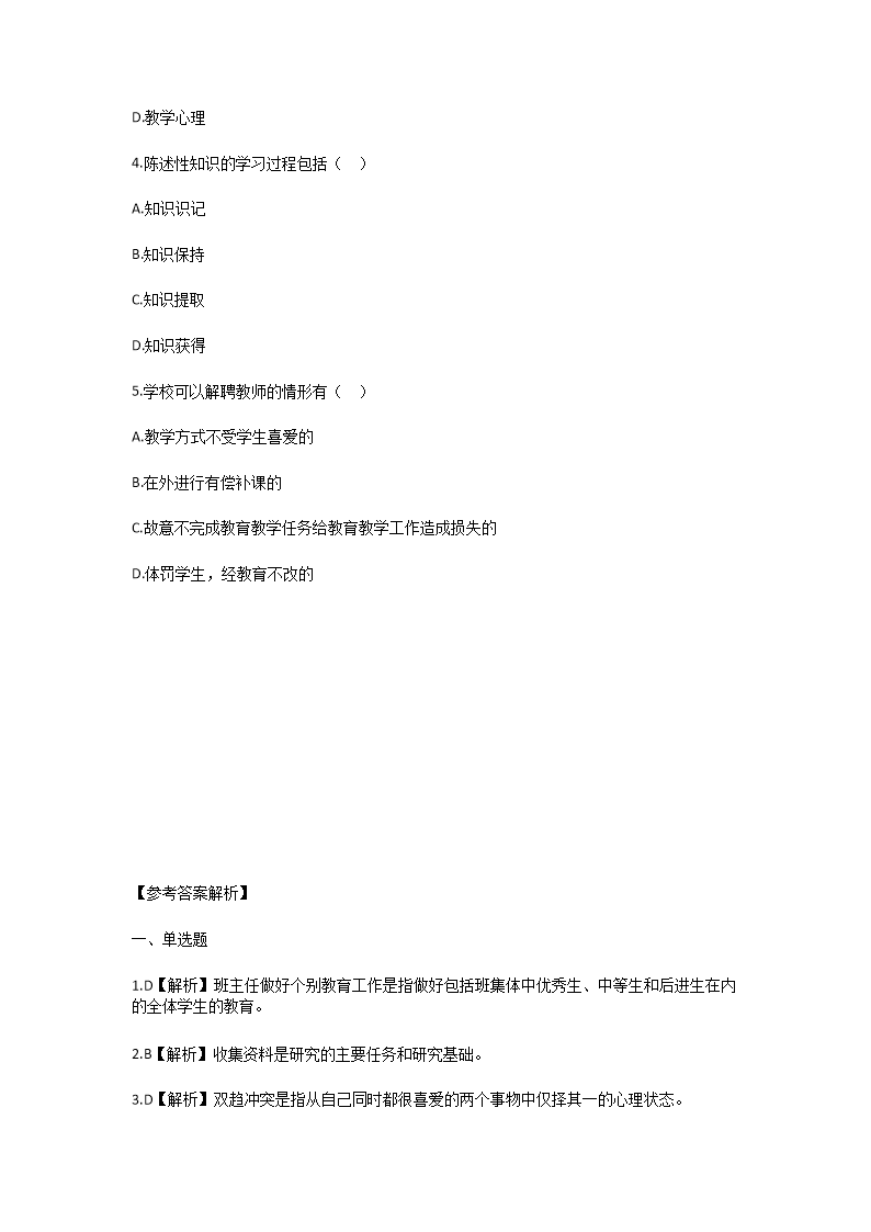 - 查看教師招聘全部真題>>