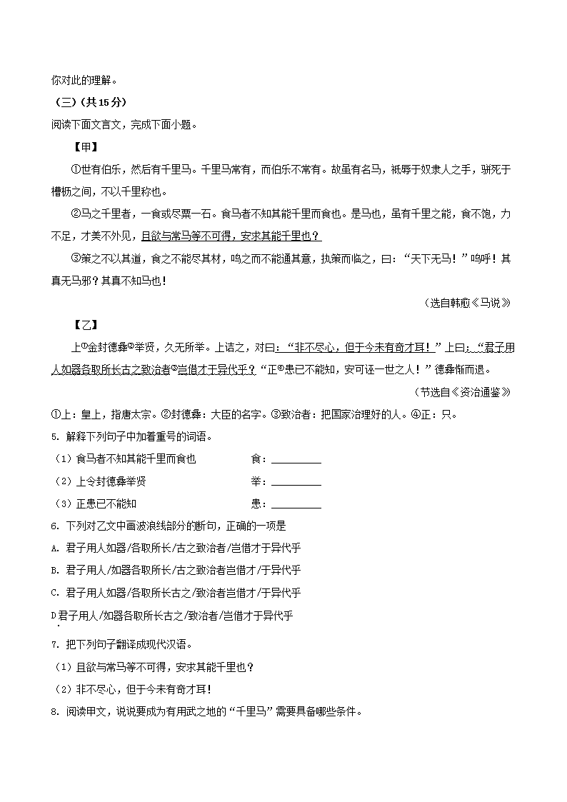 - 2023-2024學(xué)年上海市虹口區(qū)八年級(jí)下學(xué)期期末語文試題及答案