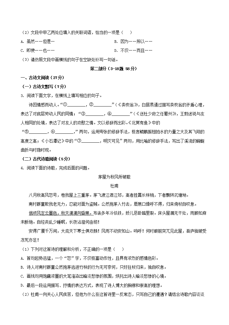 - 2023-2024學(xué)年上海市奉賢區(qū)八年級(jí)下學(xué)期期末語文試題及答案