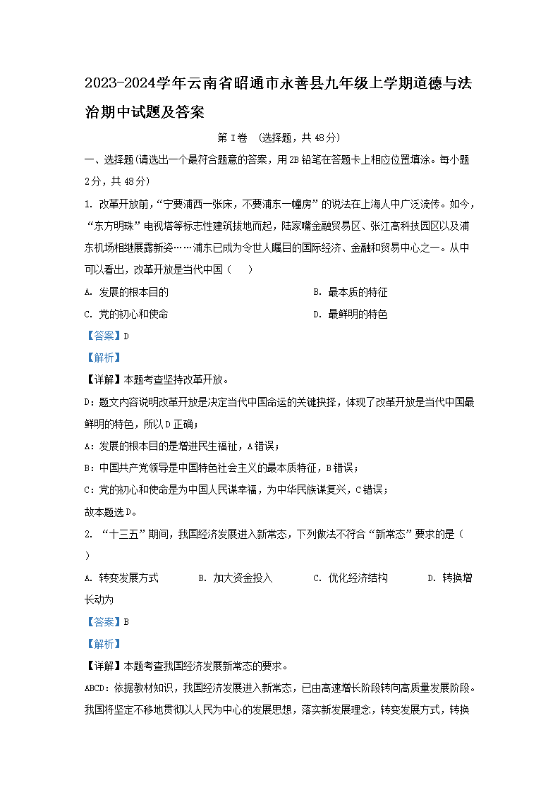 【文檔預(yù)覽】 無(wú)憂(yōu)考網(wǎng)整理發(fā)布2023-2024學(xué)年云南省昭通市永善縣九年級(jí)上學(xué)期道德與法治期中試題及答案(Word版),前五頁(yè)預(yù)覽如下: