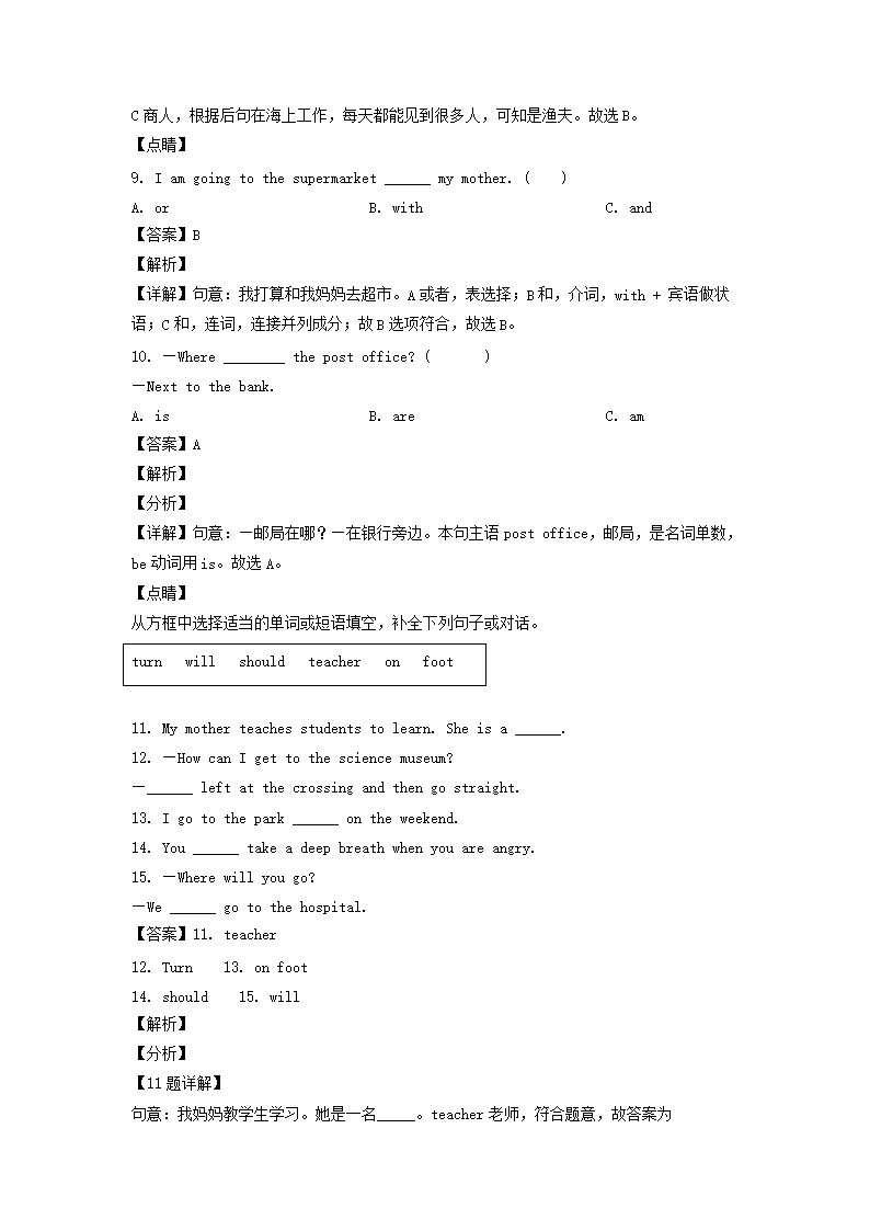 - 2020-2021年山東省臨沂市沂水縣六年級上冊期末英語試卷及答案(人教PEP版)