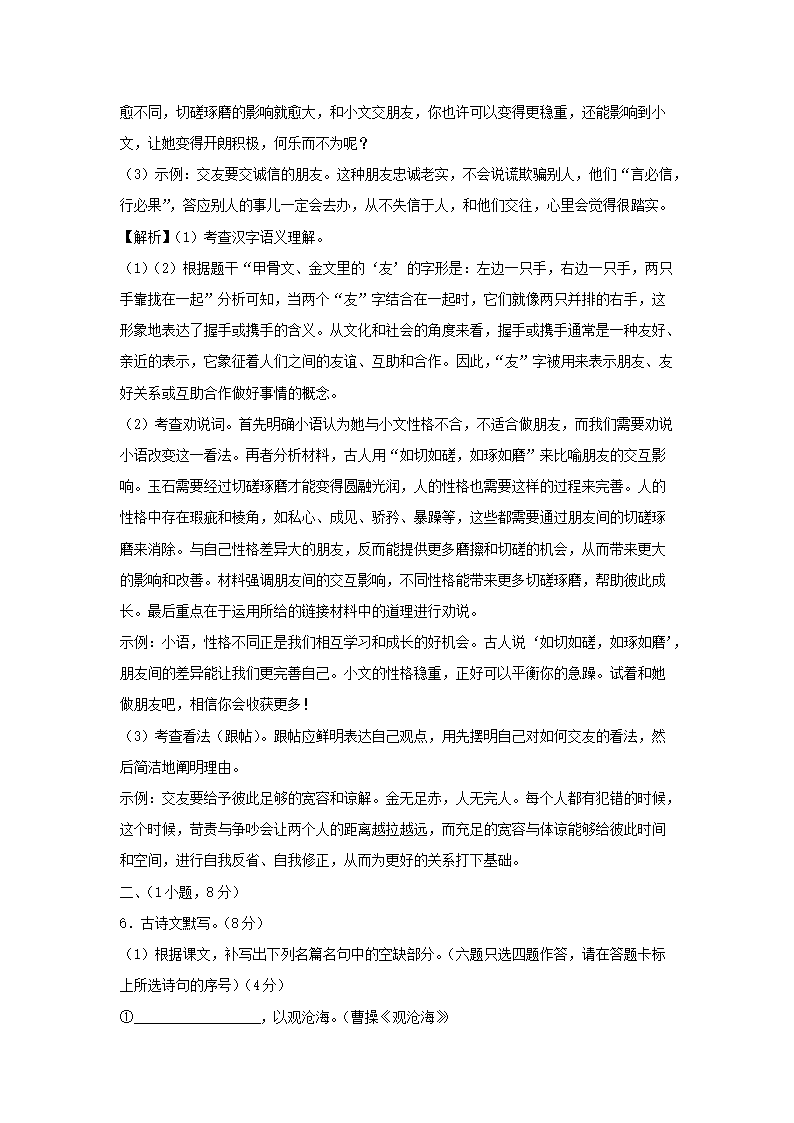 - 2024-2025學(xué)年廣東廣州越秀區(qū)七年級(jí)上冊(cè)語文期末試卷及答案