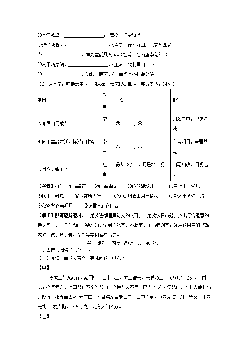- 2023-2024學(xué)年七年級(jí)下冊(cè)語文期中試卷及答案