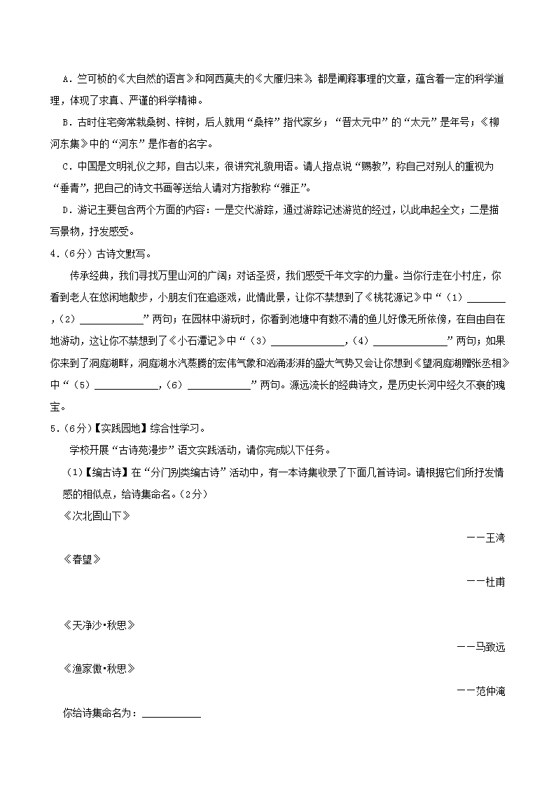 時間:2025-07-07 17:19:00 來源:無憂考網(wǎng) [字體:小 中 大]【文檔名稱】 2023-2024學(xué)年湖南省婁底市冷水江市八年級下學(xué)期期末語文試題及答案(Word版).doc