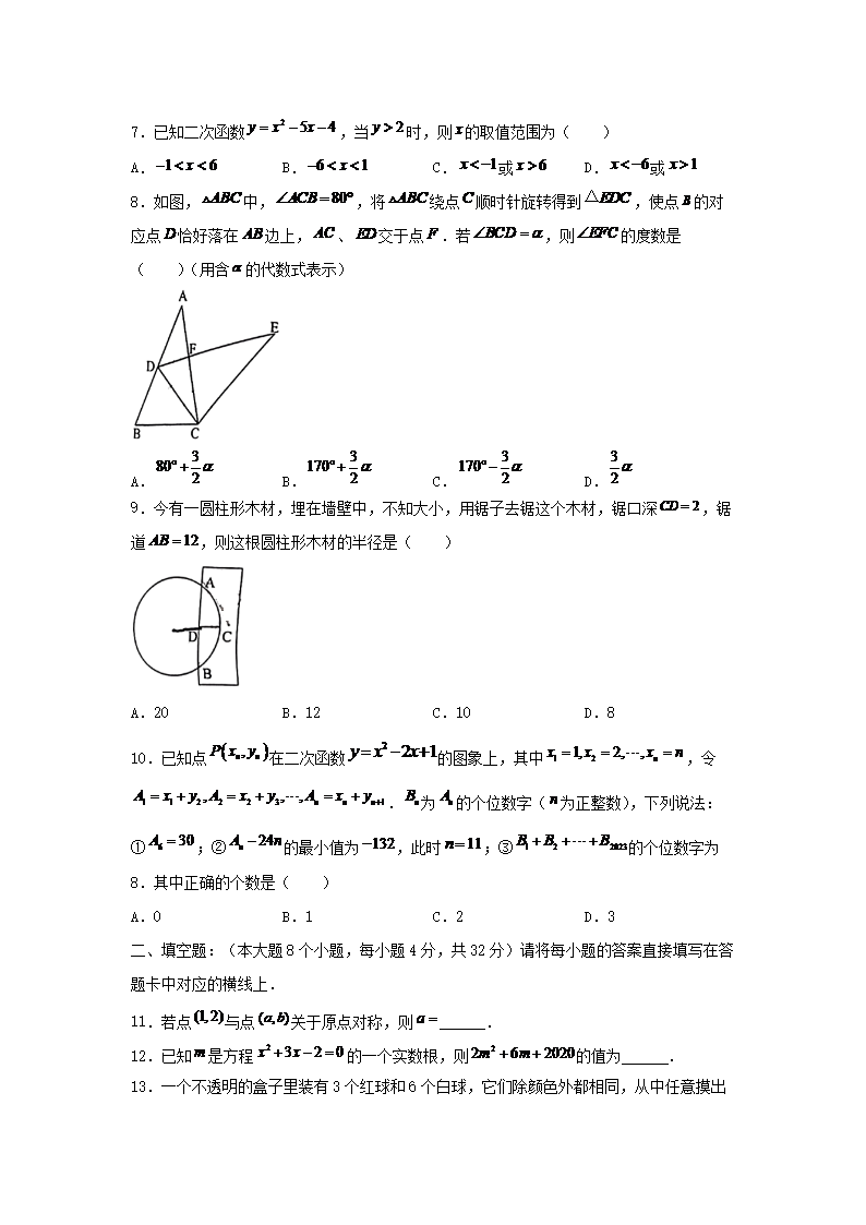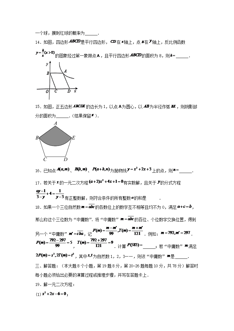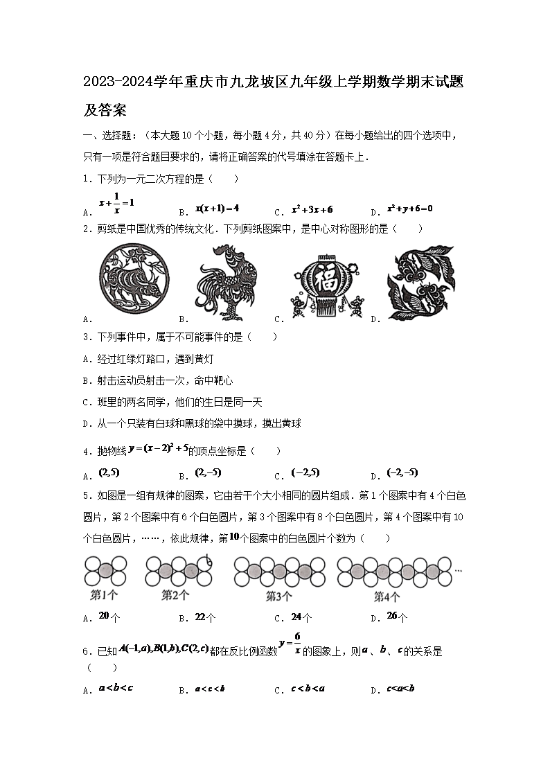 【文檔名稱】 2023-2024學年重慶市九龍坡區(qū)九年級上學期數(shù)學期末試題及答案(Word版).doc