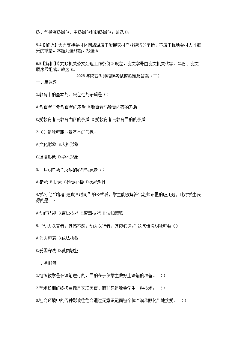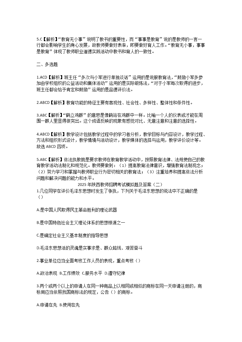 【文檔預(yù)覽】 無憂考網(wǎng)整理發(fā)布2025年陜西教師招聘考試模擬題及答案(Word版),前五頁預(yù)覽如下: