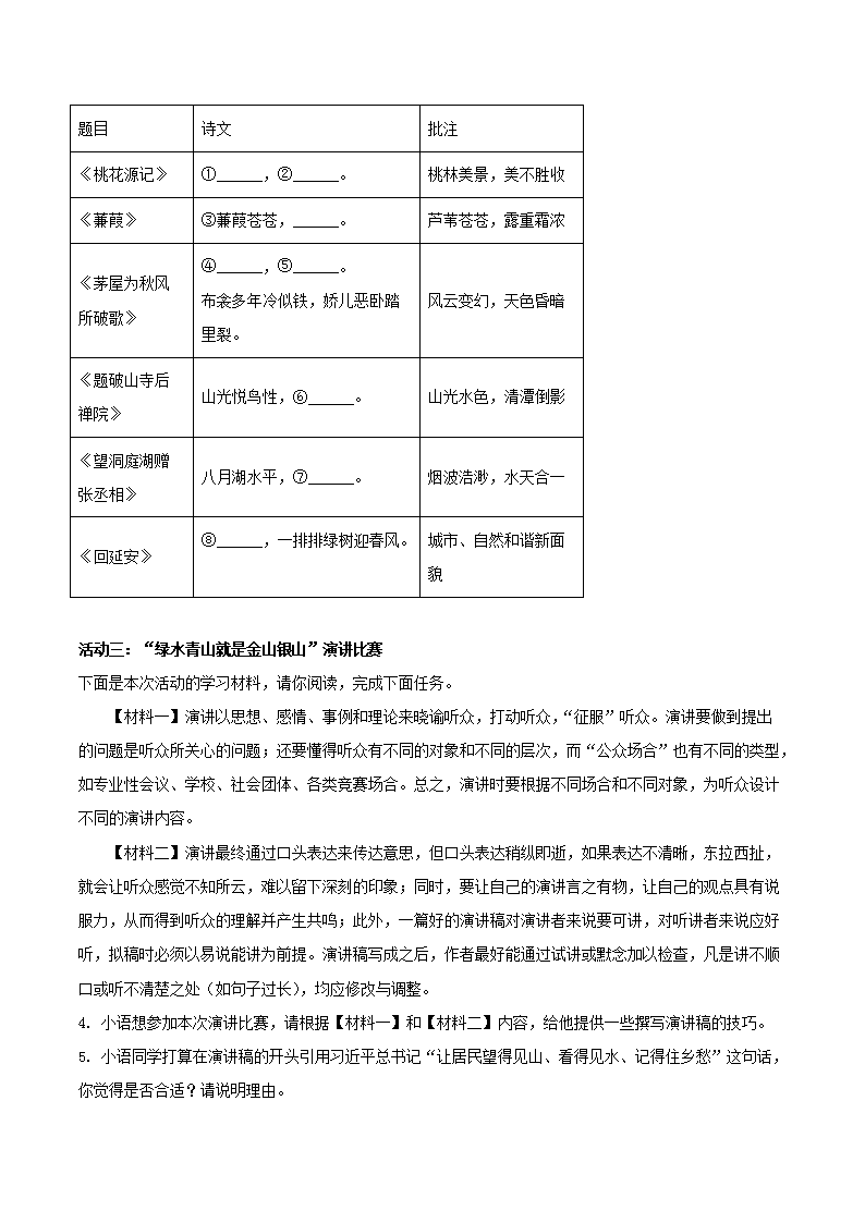 - 2023-2024學年湖南省衡陽市衡陽縣八年級下學期期末試語文試題及答案