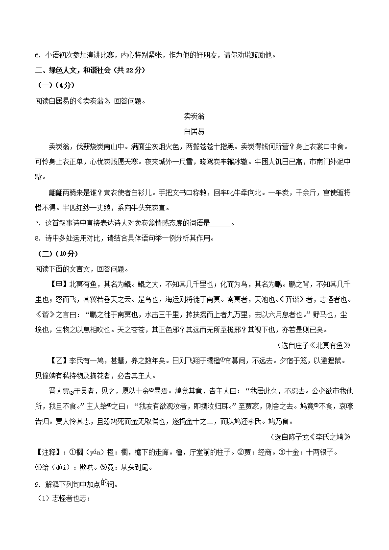 - 2023-2024學年河南省商丘市民權縣八年級下學期期末語文試題及答案