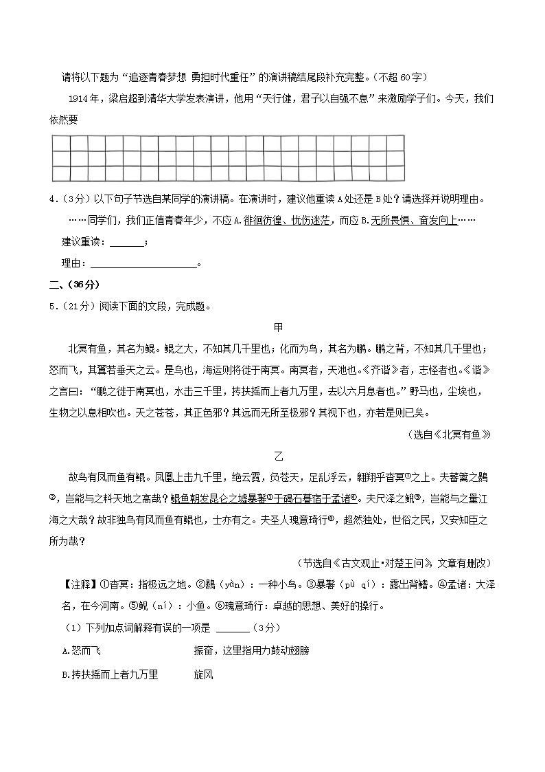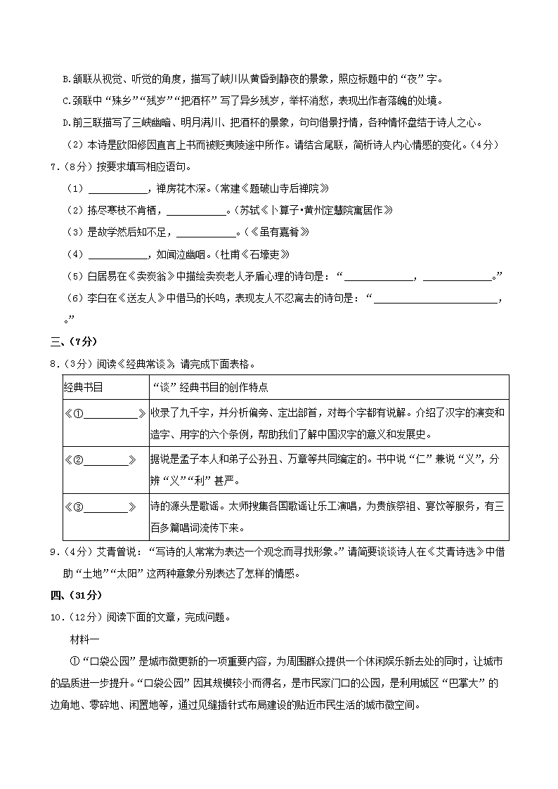 【文檔預覽】 無憂考網(wǎng)整理發(fā)布2023-2024學年山東省濟南市歷城區(qū)八年級下學期期末語文試題及答案(Word版),前五頁預覽如下: