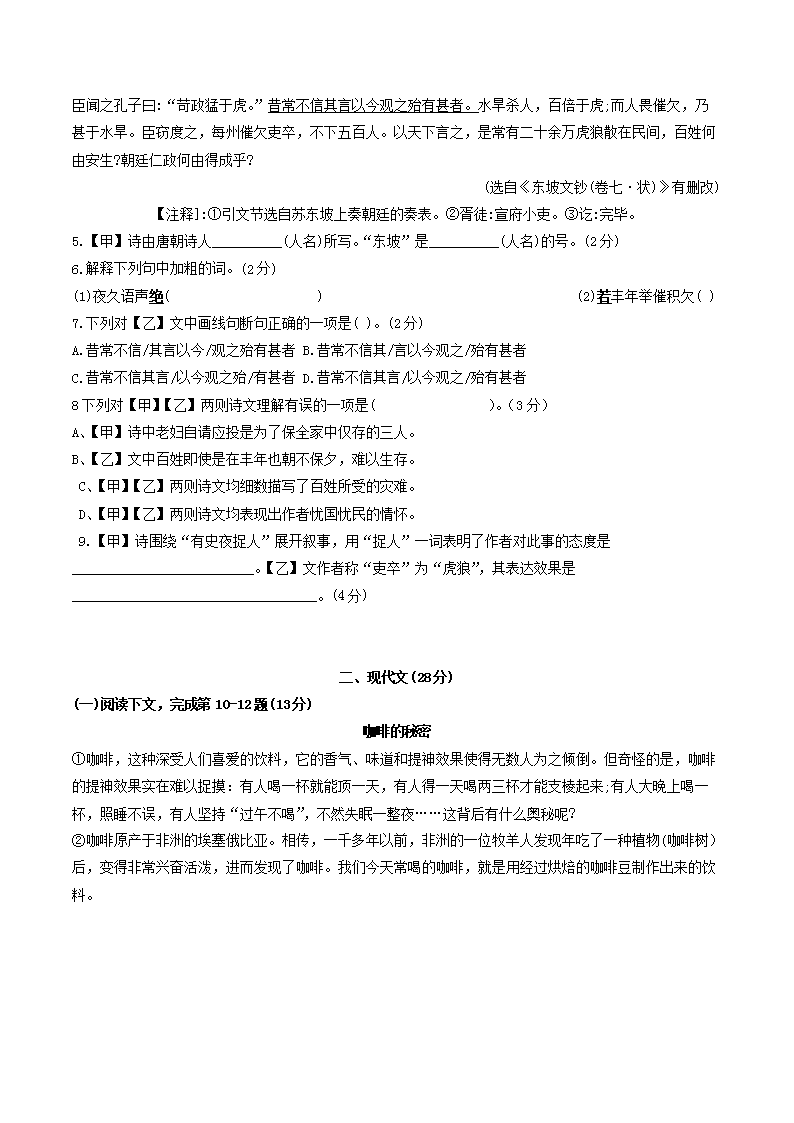 - 2023-2024學年上海市徐匯區(qū)八年級下學期期末語文試題及答案