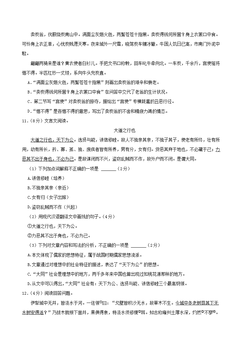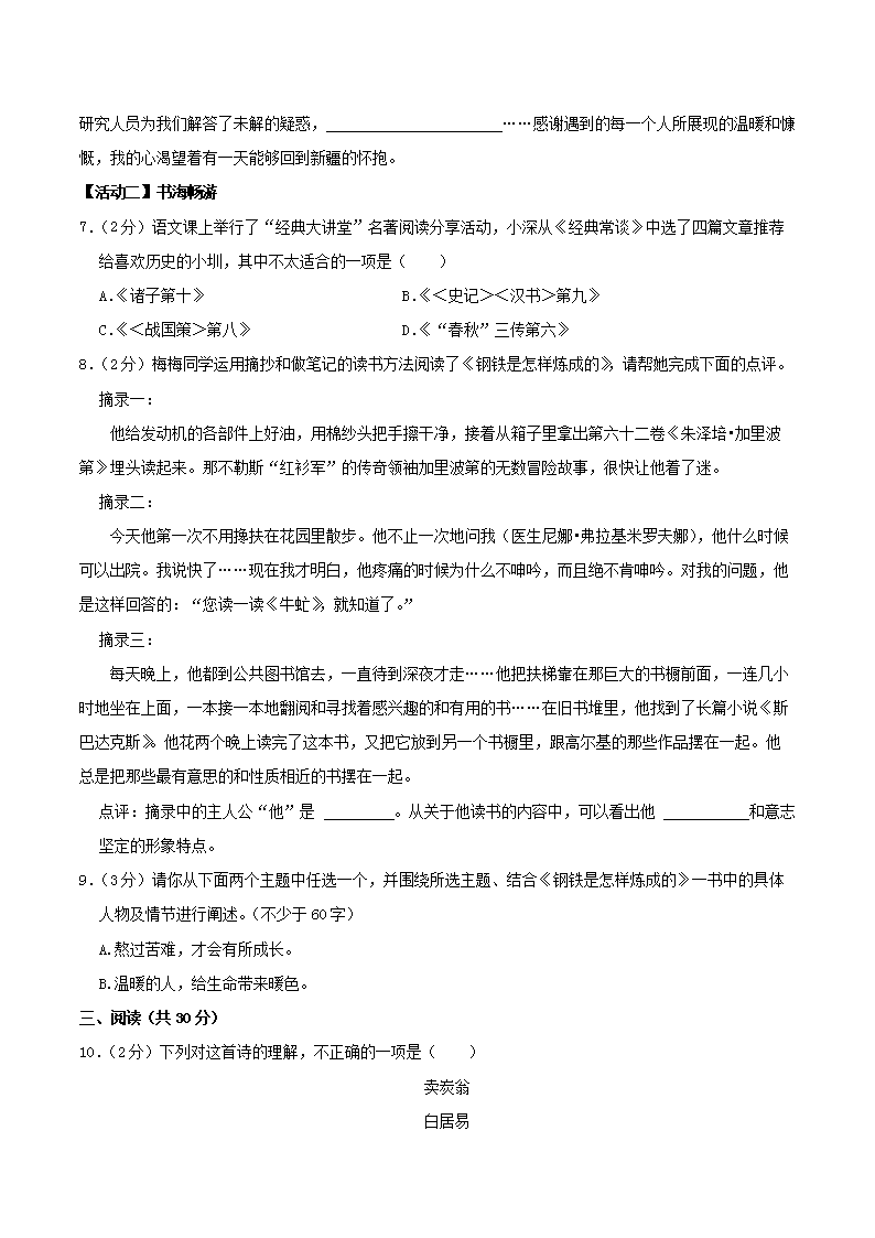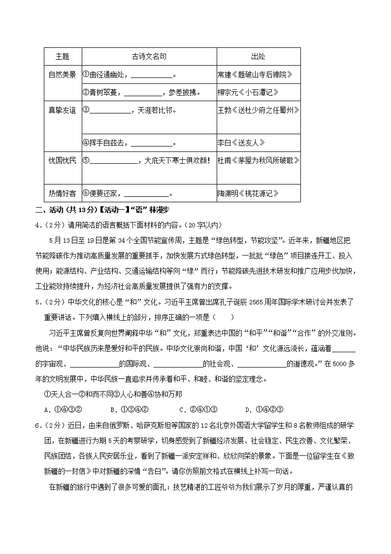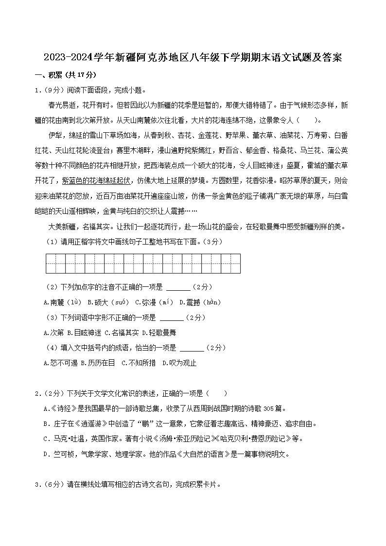 2023-2024學(xué)年新疆阿克蘇地區(qū)八年級(jí)下學(xué)期期末語(yǔ)文試題及答案(Word版)