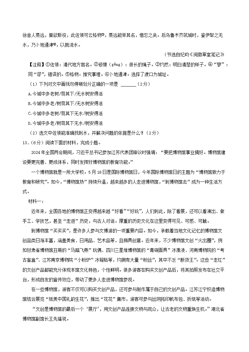 - 2023-2024學(xué)年上海市徐匯區(qū)八年級(jí)下學(xué)期期末語(yǔ)文試題及答案
