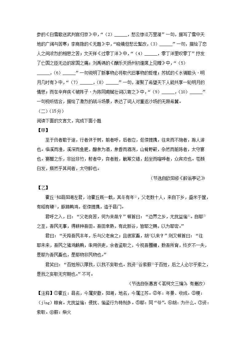 - 2024-2025學(xué)年重慶市南岸區(qū)九年級上學(xué)期語文期末試題及答案