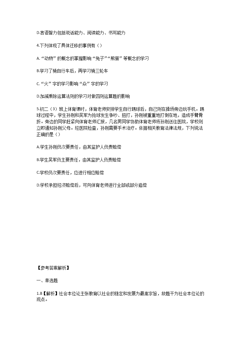 - 查看教師招聘全部真題>>