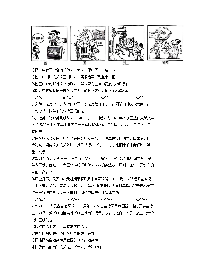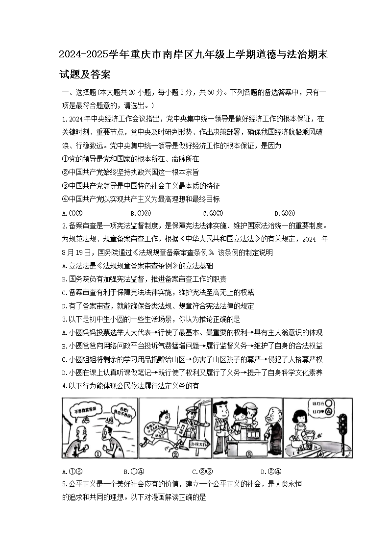 【文檔預(yù)覽】 無憂考網(wǎng)整理發(fā)布2024-2025學(xué)年重慶市南岸區(qū)九年級上學(xué)期道德與法治期末試題及答案(Word版),前五頁預(yù)覽如下: