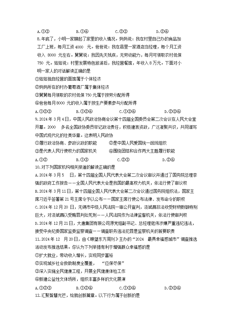 時(shí)間:2025-07-14 09:17:00 來源:無憂考網(wǎng) [字體:小 中 大]【文檔名稱】 2024-2025學(xué)年重慶市南岸區(qū)九年級上學(xué)期道德與法治期末試題及答案(Word版).doc