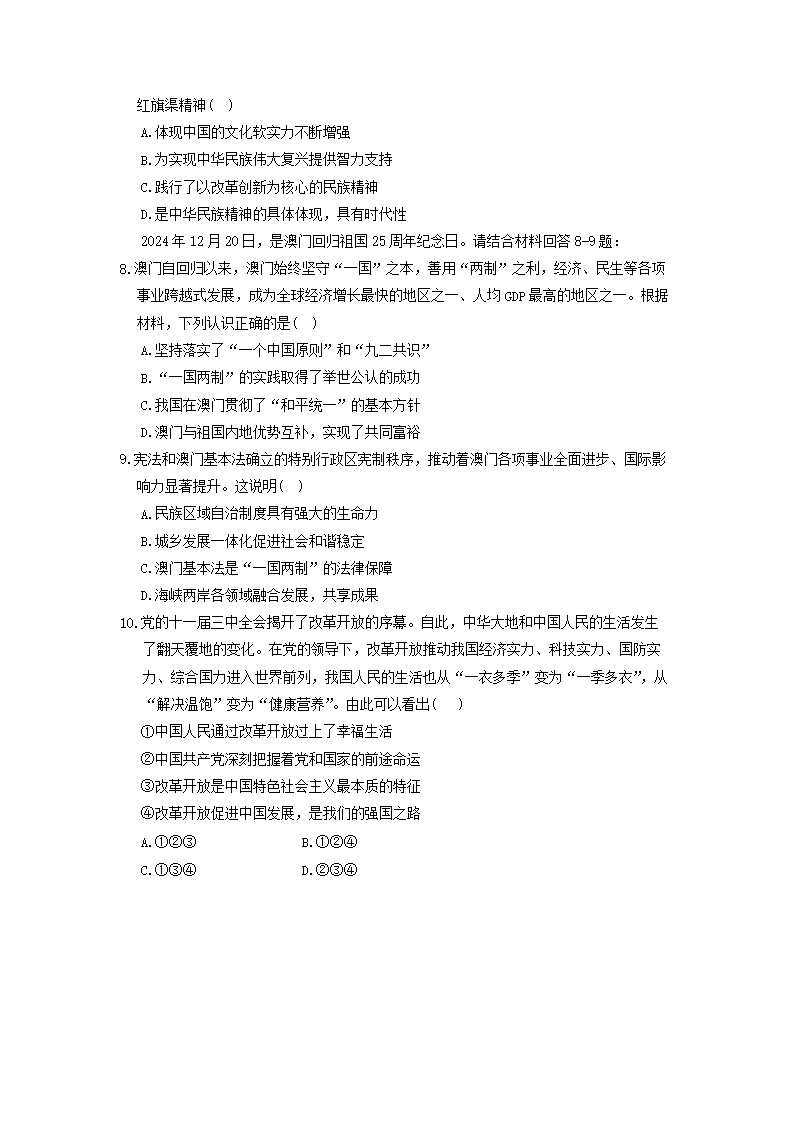 2024-2025學(xué)年重慶市梁平區(qū)九年級上學(xué)期道德與法治期末試題及答案(Word版)