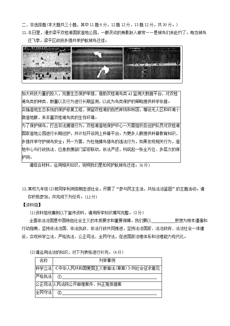 【文檔預(yù)覽】 無憂考網(wǎng)整理發(fā)布2024-2025學(xué)年重慶市梁平區(qū)九年級上學(xué)期道德與法治期末試題及答案(Word版),前五頁預(yù)覽如下: