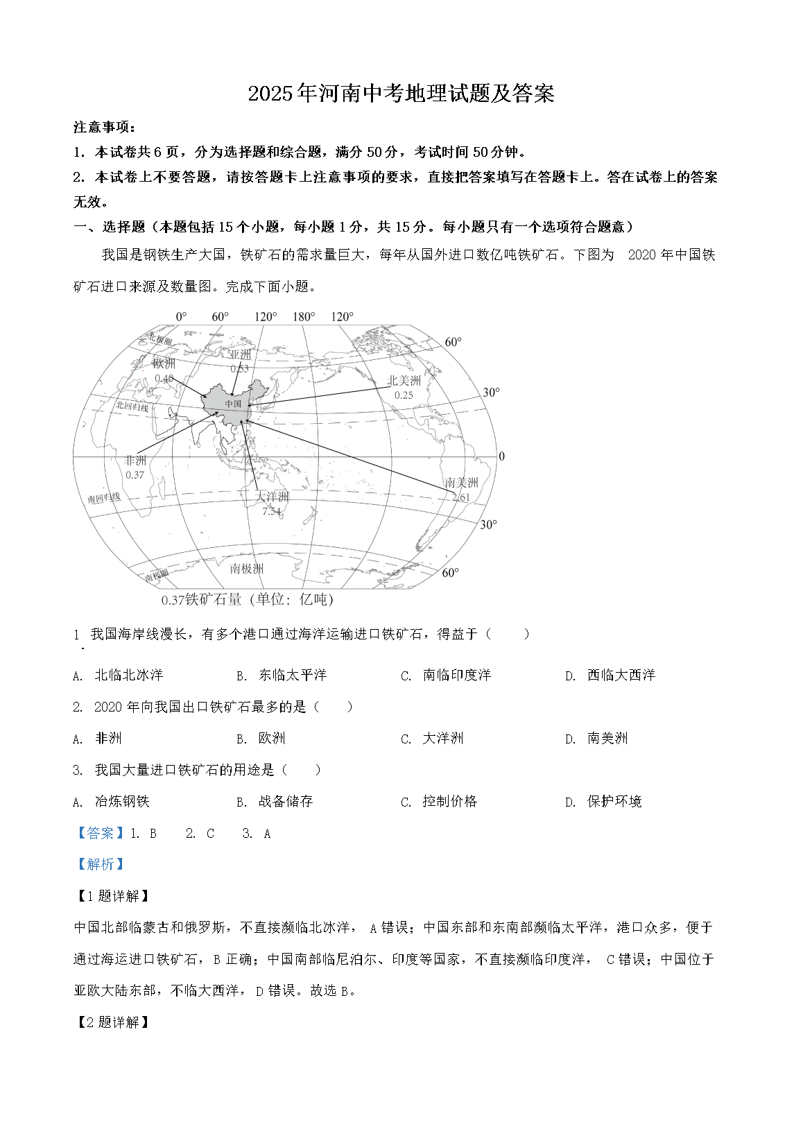 【文檔預覽】 無憂考網整理發(fā)布2025年河南中考地理試題及答案(Word版),前五頁預覽如下:
