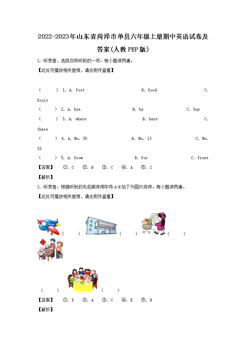 【文檔名稱】 2022-2023年山東省菏澤市單縣六年級上冊期中英語試卷及答案(人教PEP版)(Word版).doc