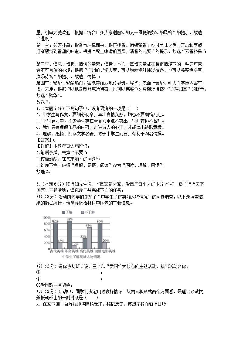 - 2021-2022學(xué)年廣東廣州海珠區(qū)七年級下冊語文期末試卷及答案
