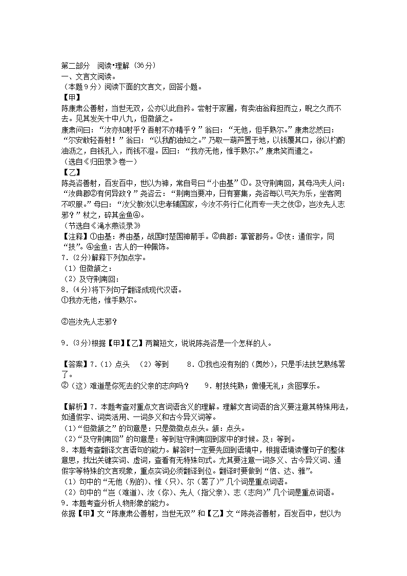 - 2021-2022學(xué)年廣東廣州七年級下冊語文期末試卷及答案