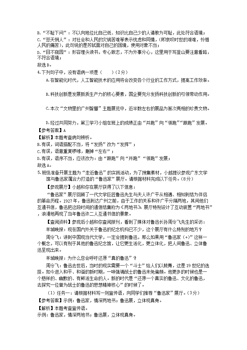 【文檔預覽】 無憂考網(wǎng)整理發(fā)布2023-2024學年廣東廣州越秀區(qū)七年級下冊語文期末試卷及答案(Word版),前五頁預覽如下:
