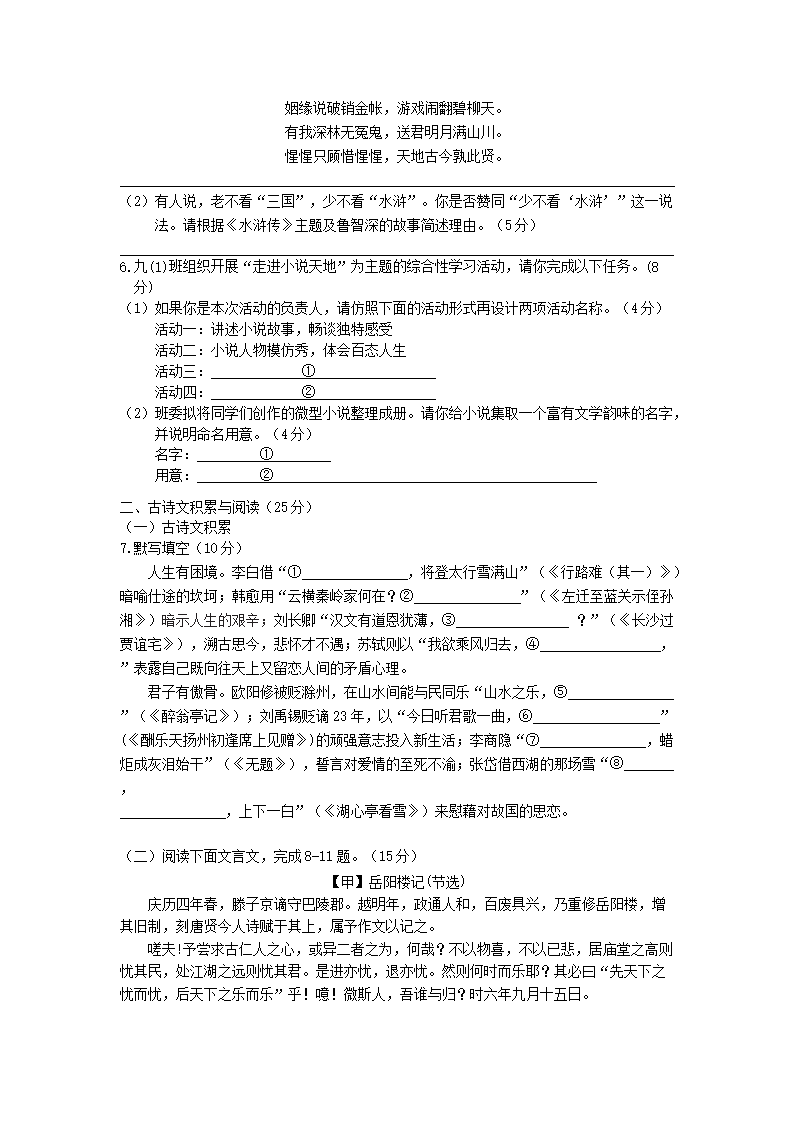 2024-2025學(xué)年重慶市永川區(qū)九年級上學(xué)期語文期末試題及答案(Word版)