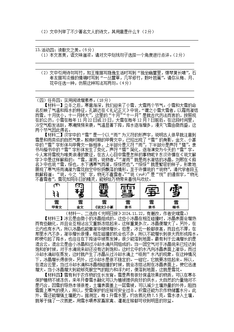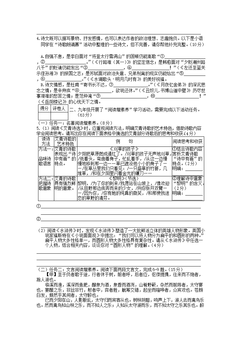 - 2024-2025學(xué)年重慶市九龍坡區(qū)九年級上學(xué)期語文期末試題及答案